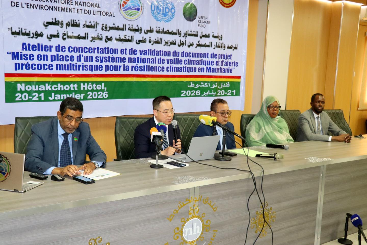 Cet atelier s’est tenu en présence du Chargé du projet d’alerte précoce à l’Organisation des Nations Unies pour le Développement Industriel (ONUDI), Monsieur Yunrui Zhu, ainsi que du Directeur général de l’Observatoire National de l’Environnement et du Littoral, Monsieur Mohamed Yahya Ould Lafdhal. Il s’inscrit dans le cadre des activités de l’Observatoire National de l’Environnement et du Littoral (ONEL).